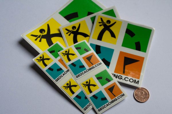 - klasiskās Geocaching.com krāsainās uzlīmes;
